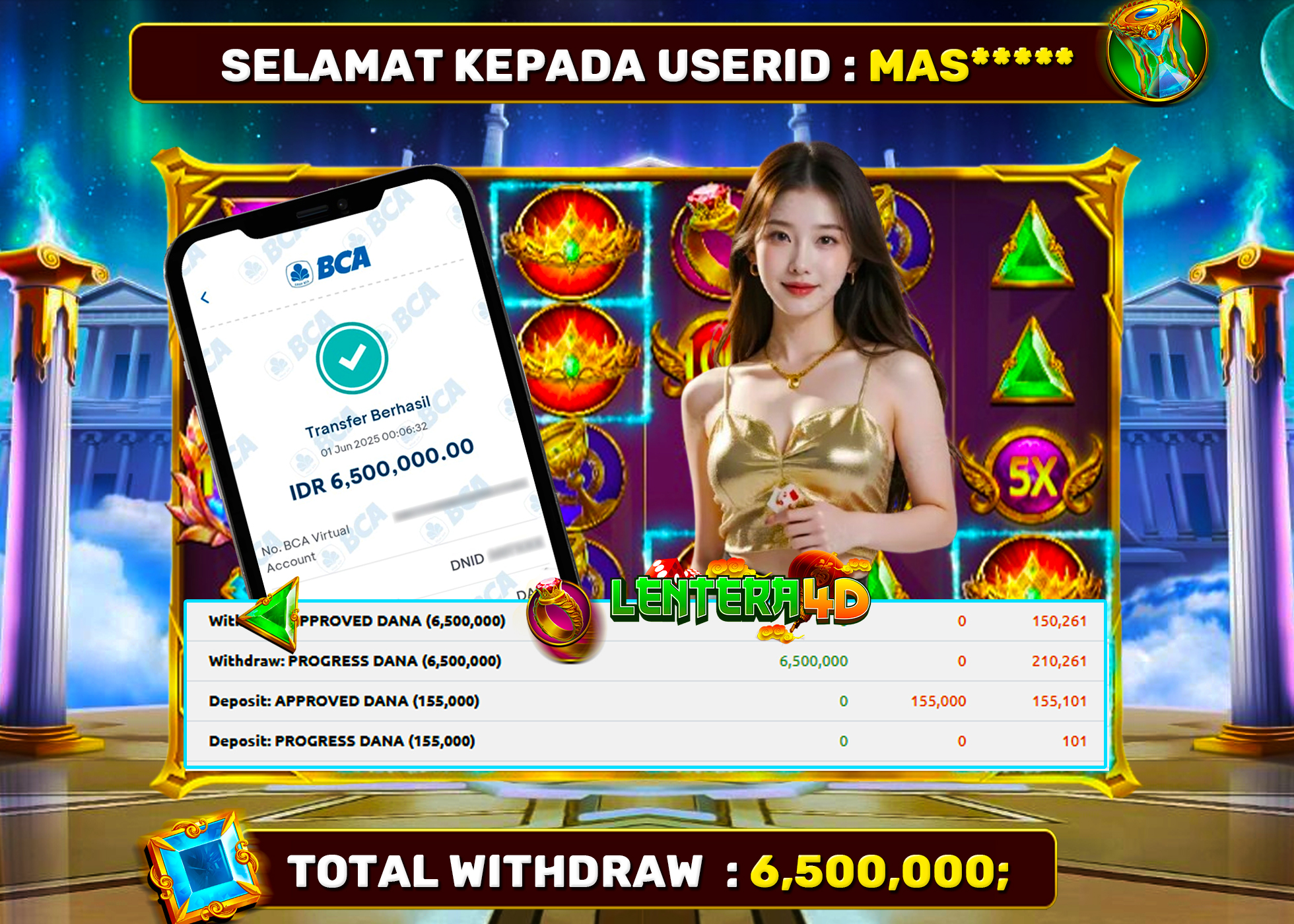 TOTAL KEMENANGAN : Rp. 6.500.000,-
