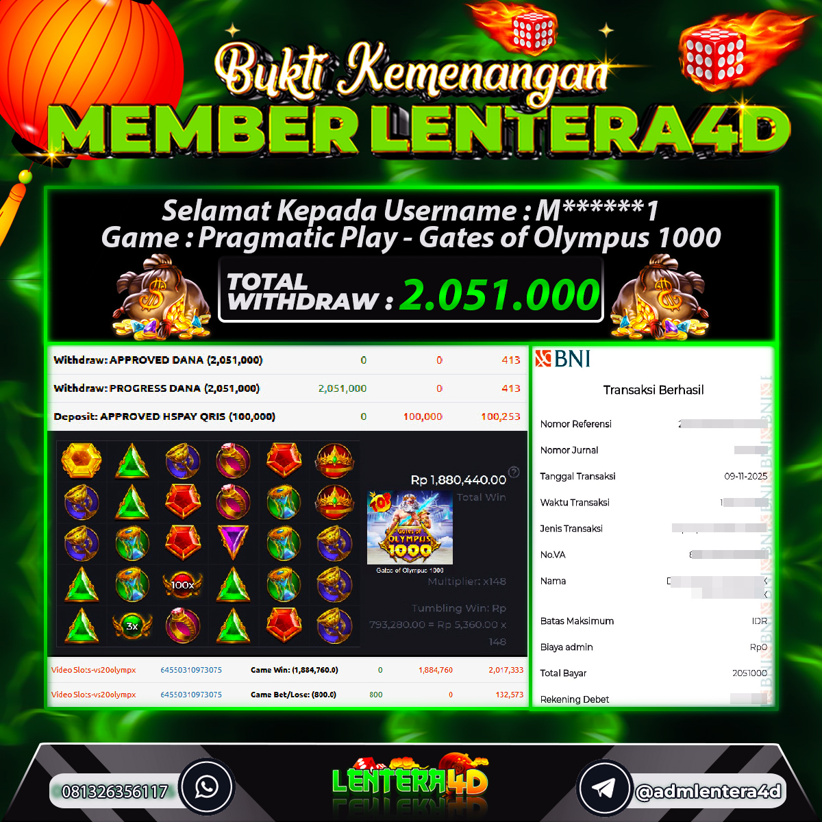 TOTAL KEMENANGAN : Rp. 2.051.000,-