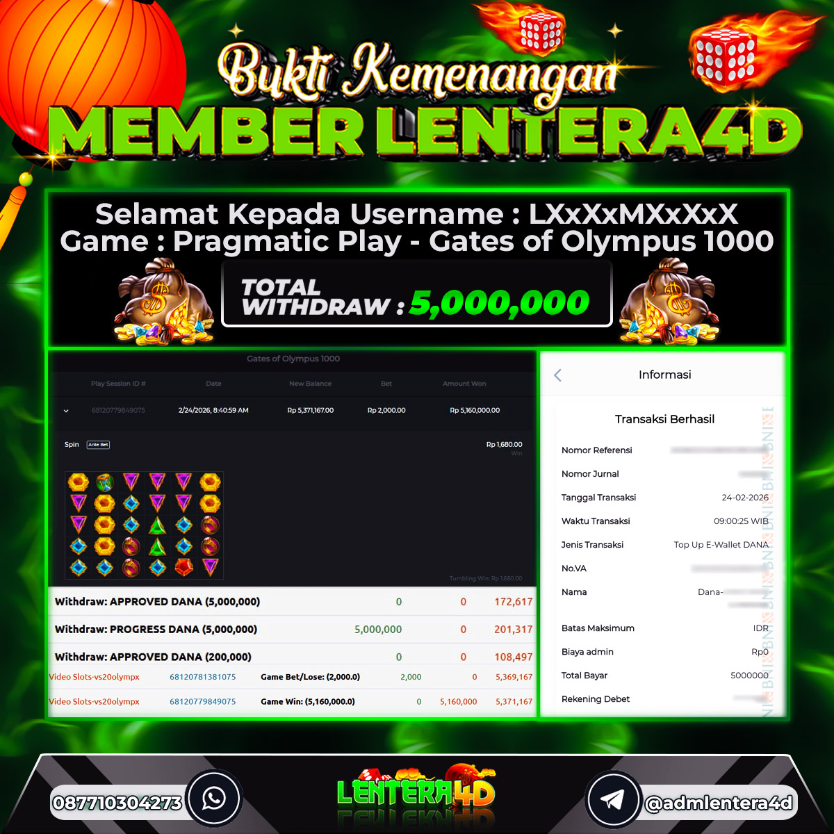 Satu lagi Bukti JP dan Pembarayan Sah Dan Dapat Dipertanggung Jawabkan, WD Berapapun Pasti Dibayar Lunas Hanya di Situs LENTERA4D. Hati Hati Kepada Pihak Pihak Yang Mengatas namakan Pihak LENTERA4D Untuk Melakukan Penipuan.