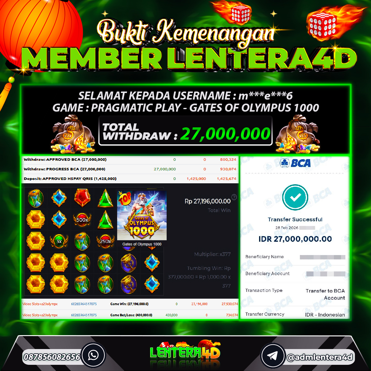 TOTAL KEMENANGAN : Rp 27.000.000,-