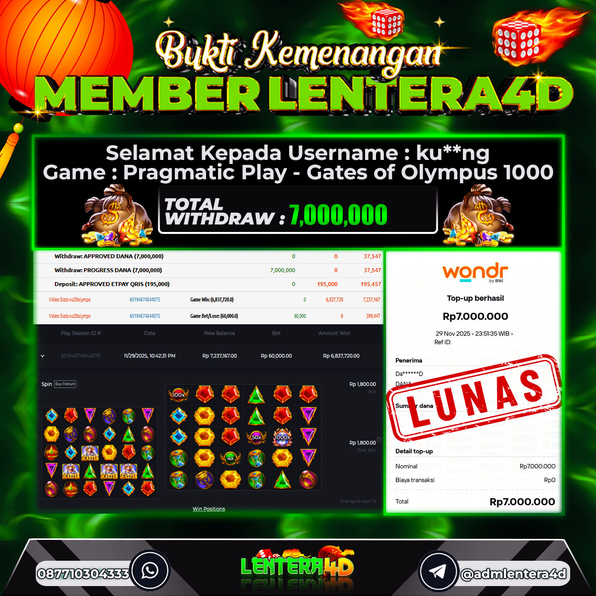 TOTAL KEMENANGAN : Rp. 7.000.000,-