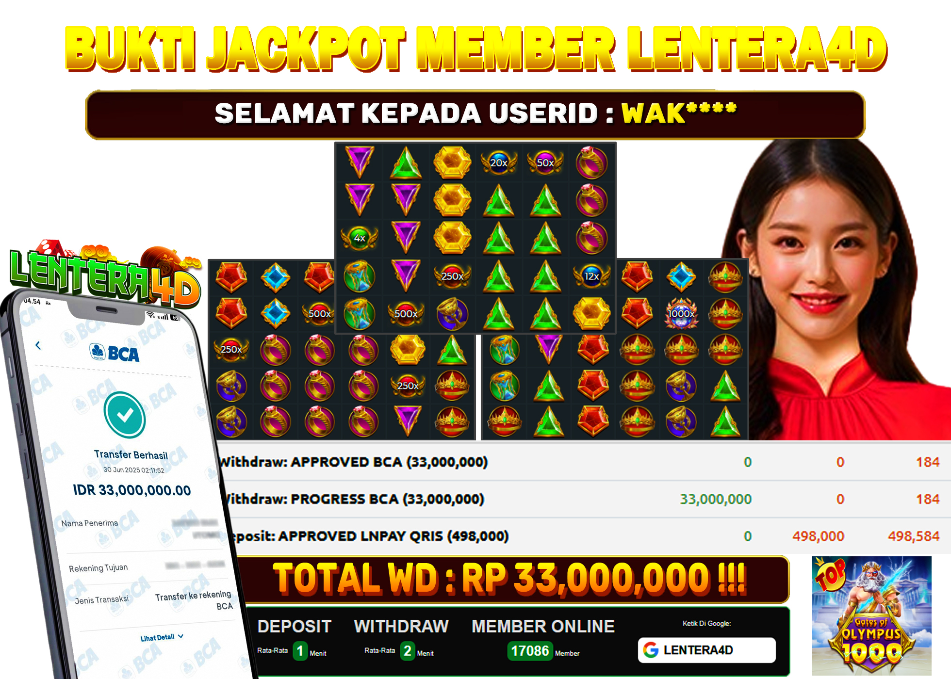 Satu lagi Bukti JP dan Pembarayan Sah Dan Dapat Dipertanggung Jawabkan, WD Berapapun Pasti Dibayar Lunas Hanya di Situs LENTERA 4D. Hati Hati Kepada Pihak Pihak Yang Mengatas namakan Pihak LENTERA4D Untuk Melakukan Penipuan.