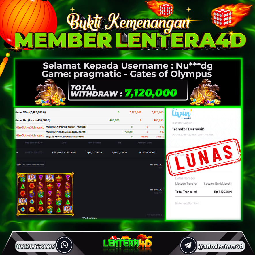 TOTAL KEMENANGAN : Rp. 7.120.000,-