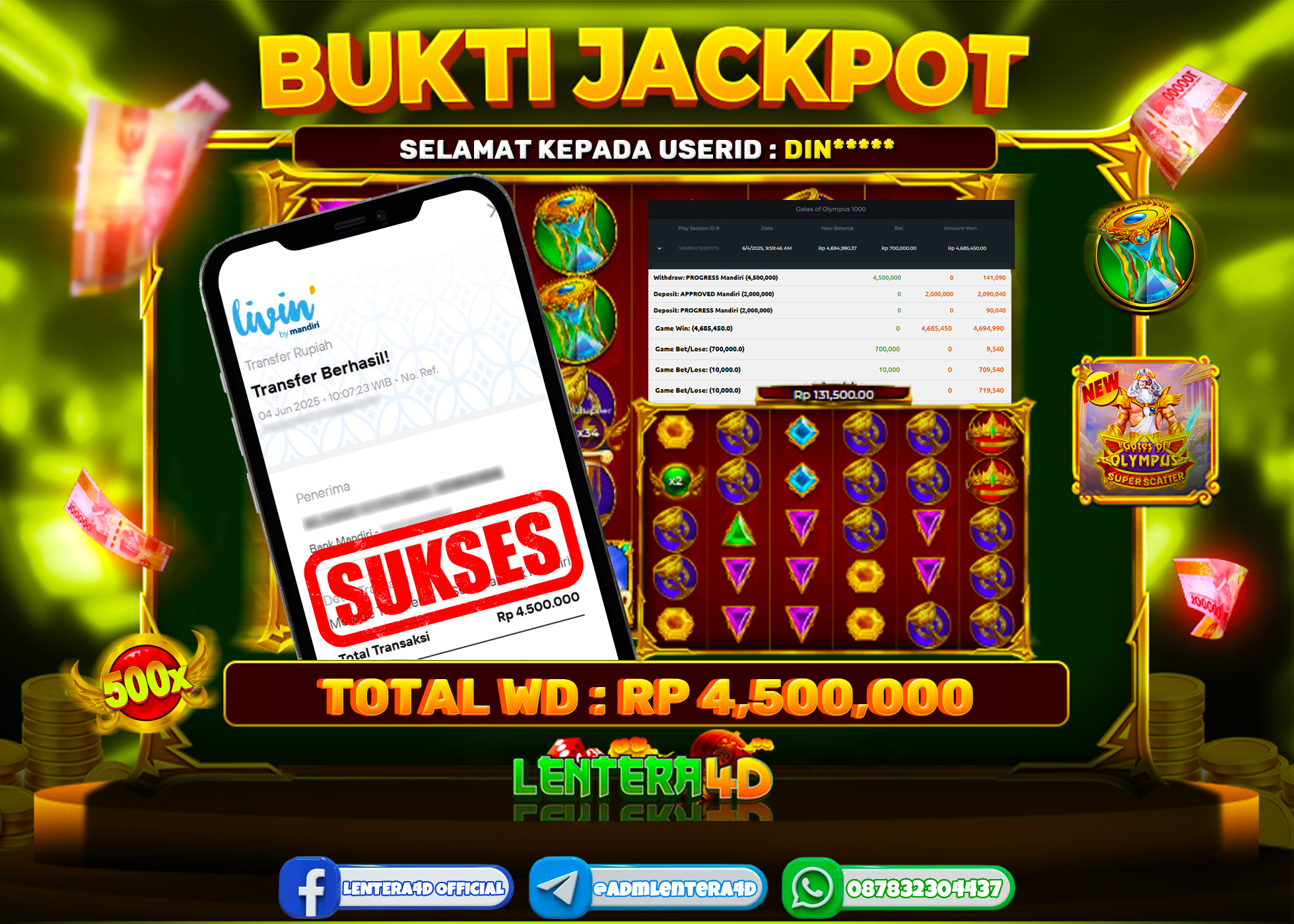 TOTAL KEMENANGAN : Rp. 4.500.000,-