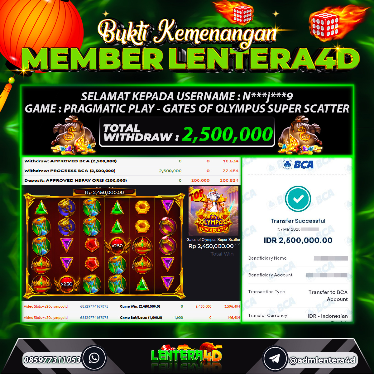 Satu lagi Bukti JP dan Pembarayan Sah Dan Dapat Dipertanggung Jawabkan, WD Berapapun Pasti Dibayar Lunas Hanya di Situs LENTERA4D. Hati Hati Kepada Pihak Pihak Yang Mengatas namakan Pihak LENTERA4D Untuk Melakukan Penipuan.
