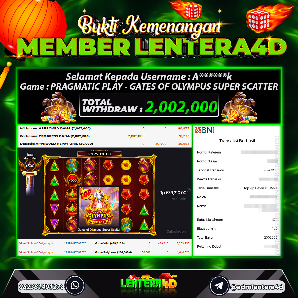 Satu lagi Bukti JP dan Pembarayan Sah Dan Dapat Dipertanggung Jawabkan, WD Berapapun Pasti Dibayar Lunas Hanya di Situs LENTERA 4D. Hati Hati Kepada Pihak Pihak Yang Mengatas namakan Pihak LENTERA4D Untuk Melakukan Penipuan.