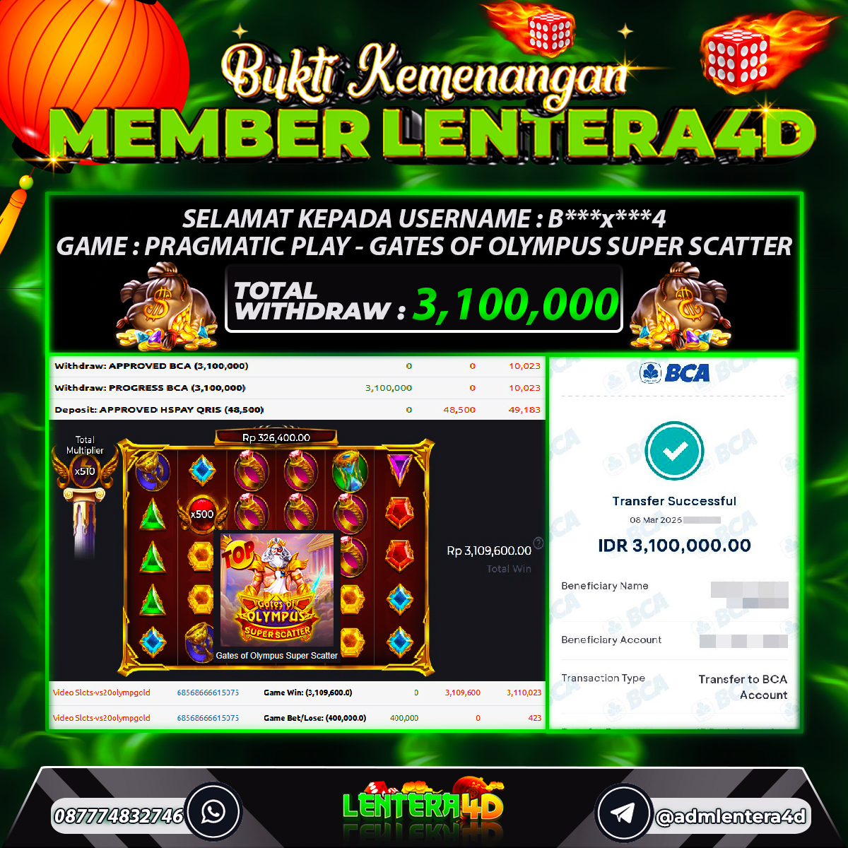 TOTAL KEMENANGAN : Rp 3.100.000,-
