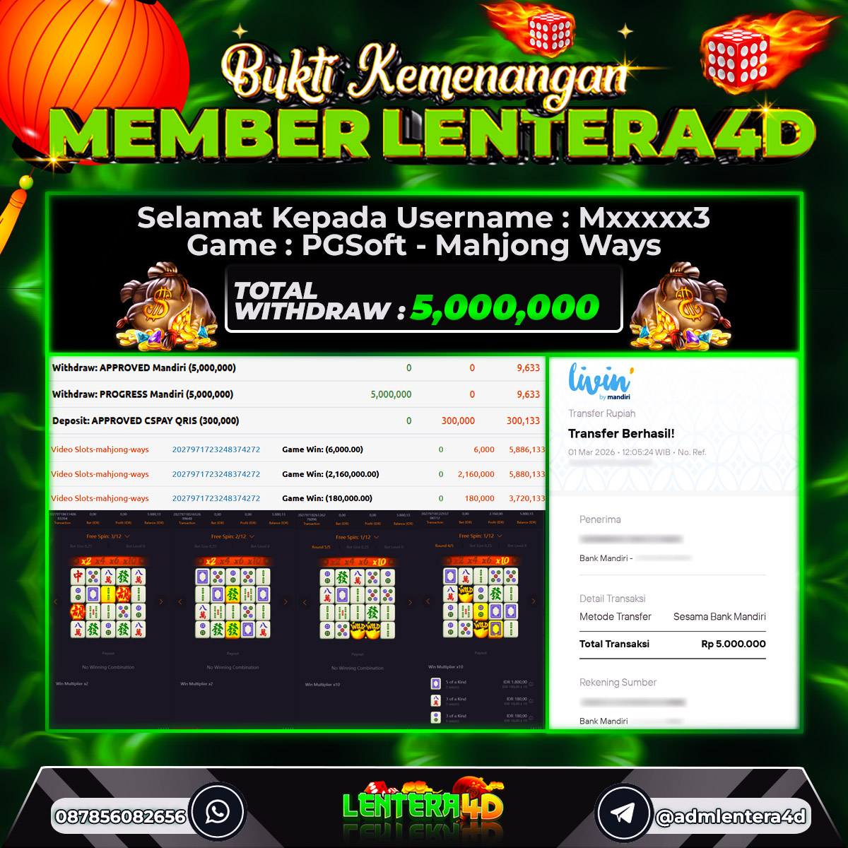 TOTAL KEMENANGAN : Rp 5.000.000,-