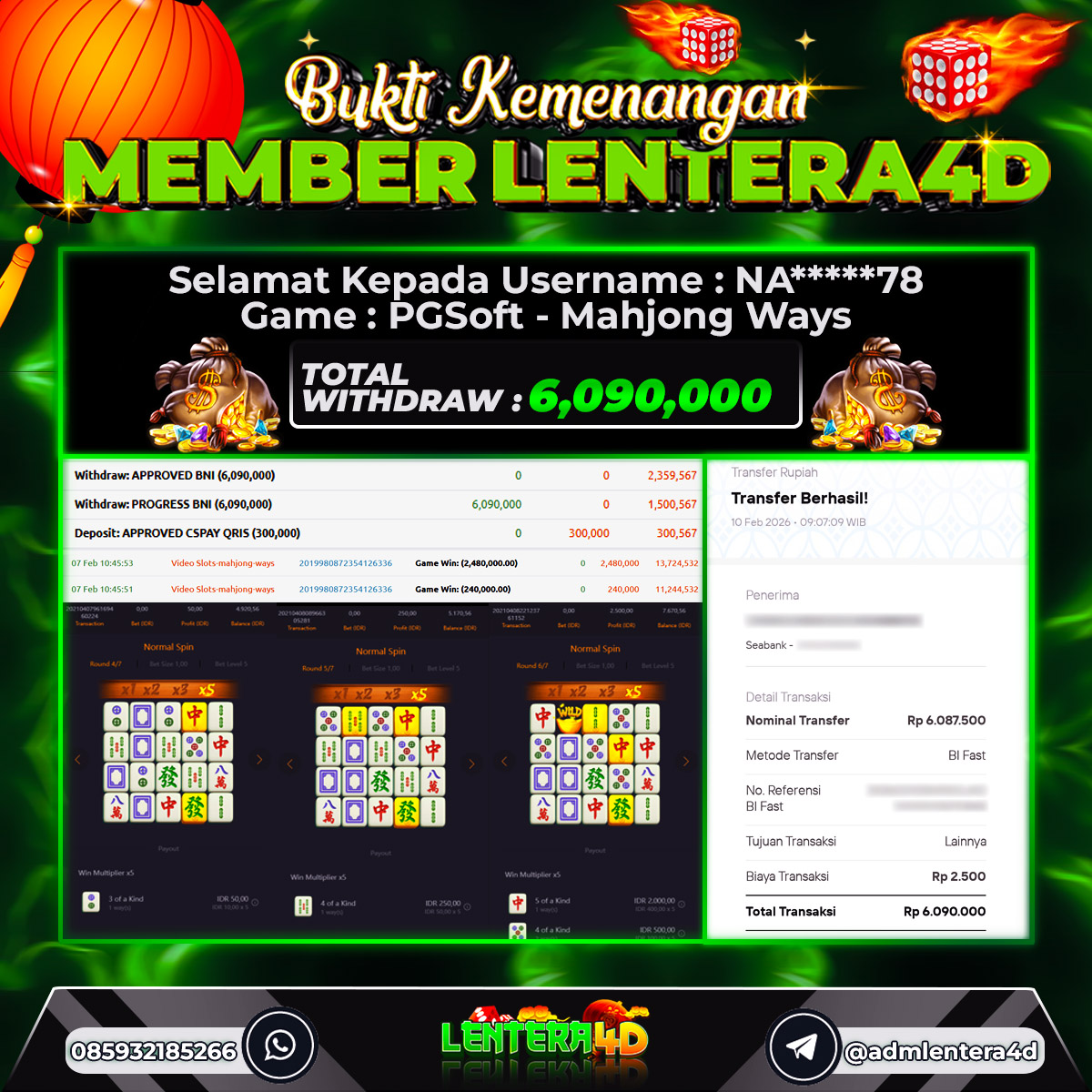 TOTAL KEMENANGAN : Rp. 6.090.000,-