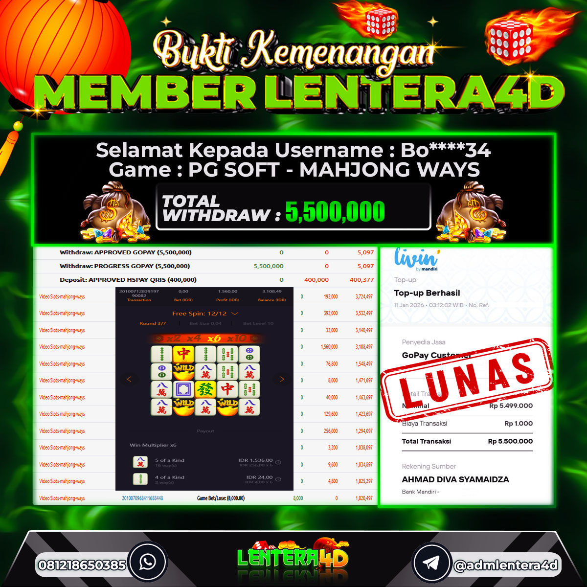 JACKPOT MAIN MAHJONG WAYS 11 JANUARI 2026, Jackpot Slot Gacor, Kemenangan Slot, Bukti Kemenangan Slot, Kemenangan Slot PG SOFT, Menang Slot online, Slot Gacor, Situs Aman Terpercaya, WD Berapapun Pasti DI Bayar Tuntas, Maxwin Slot Online.