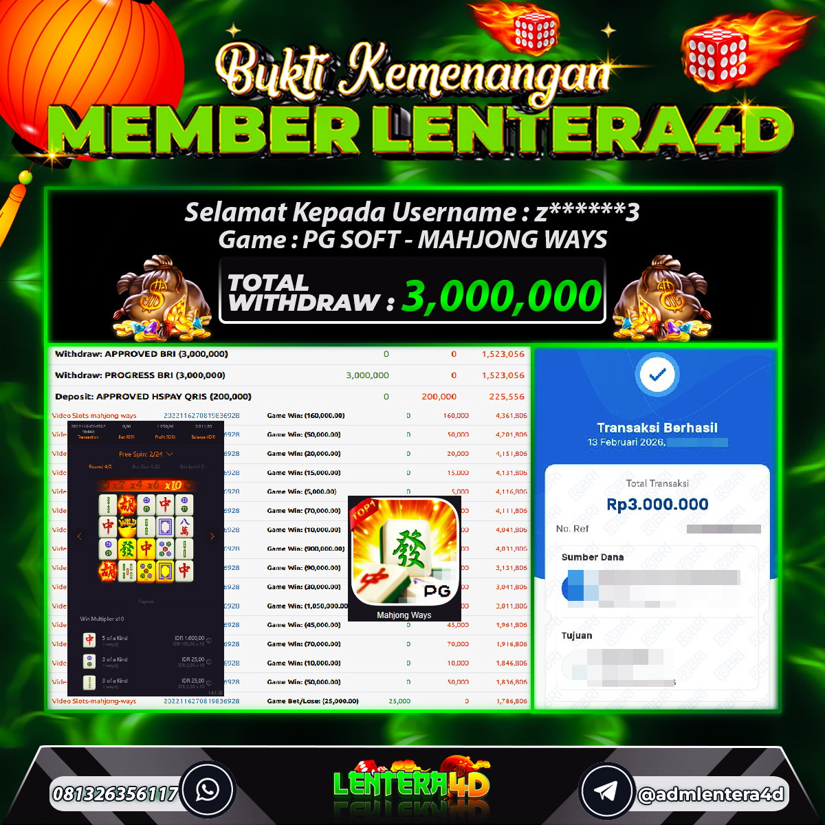 JACKPOT MAIN MAHJONG WAYS 13 FEBRUARY 2026, Jackpot Slot Gacor, Kemenangan Slot, Bukti Kemenangan Slot, Kemenangan Slot PG SOFT, Menang Slot online, Slot Gacor, Situs Aman Terpercaya, WD Berapapun Pasti DI Bayar Tuntas, Maxwin Slot Online.