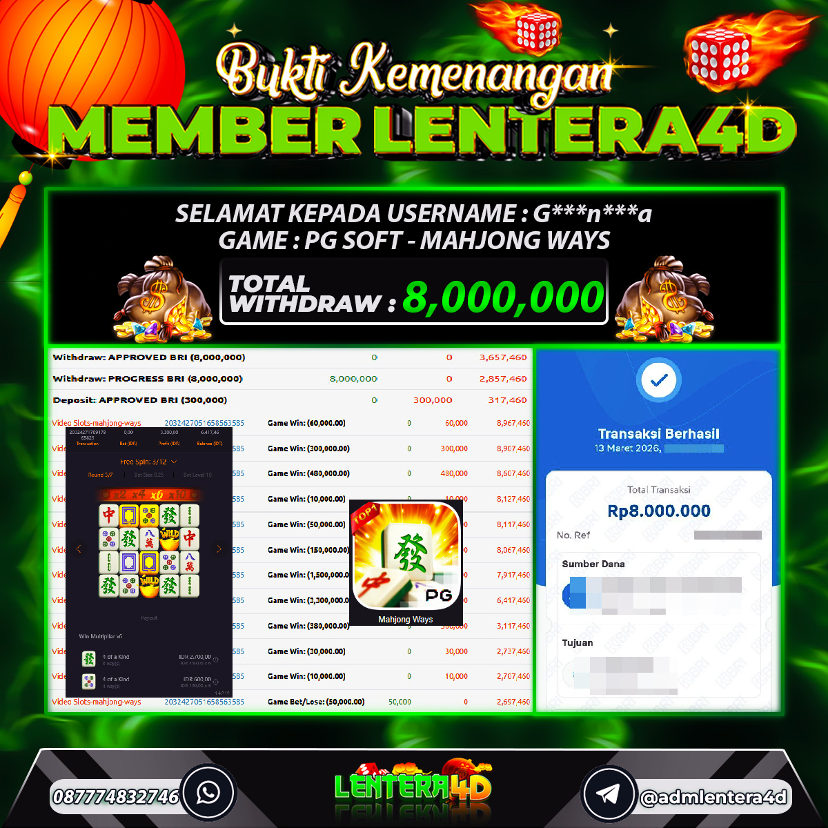 TOTAL KEMENANGAN : Rp 8.000.000,-