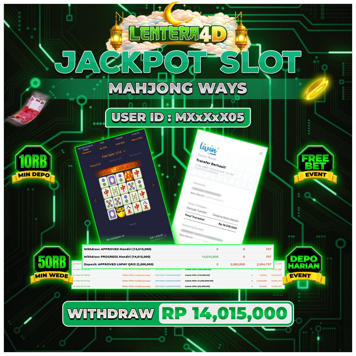 TOTAL KEMENANGAN : Rp 14.015.000,-