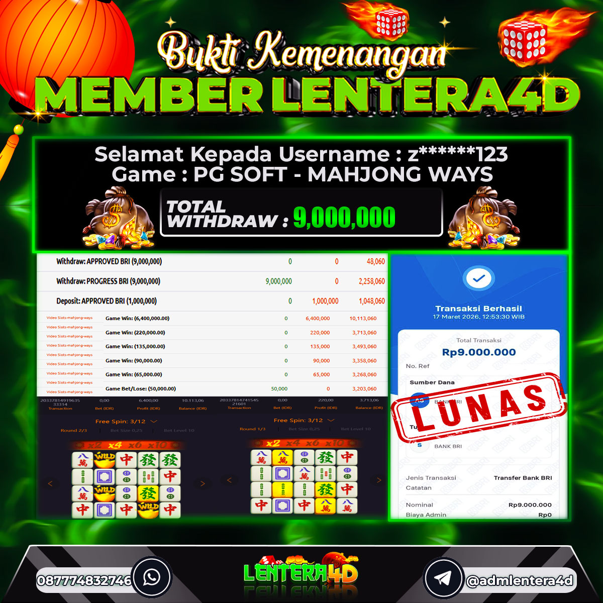 TOTAL KEMENANGAN : Rp 9.000.000,-