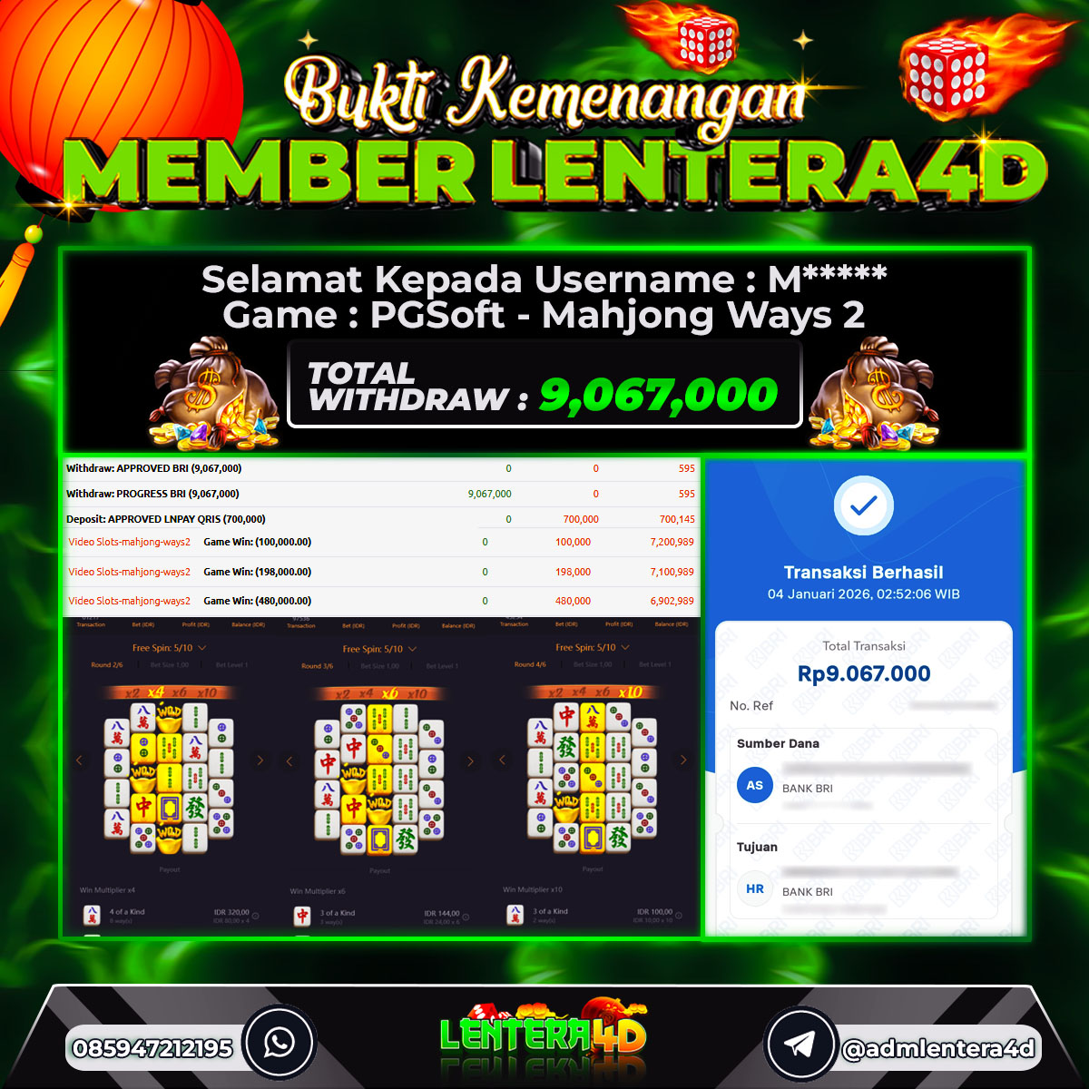 TOTAL KEMENANGAN : Rp. 9,067,000,-