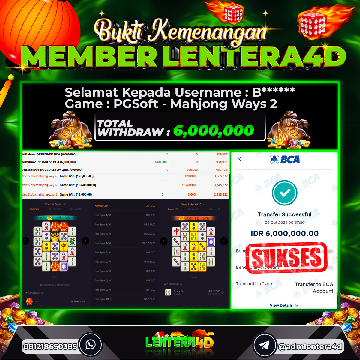 TOTAL KEMENANGAN : Rp 6.000.000,-