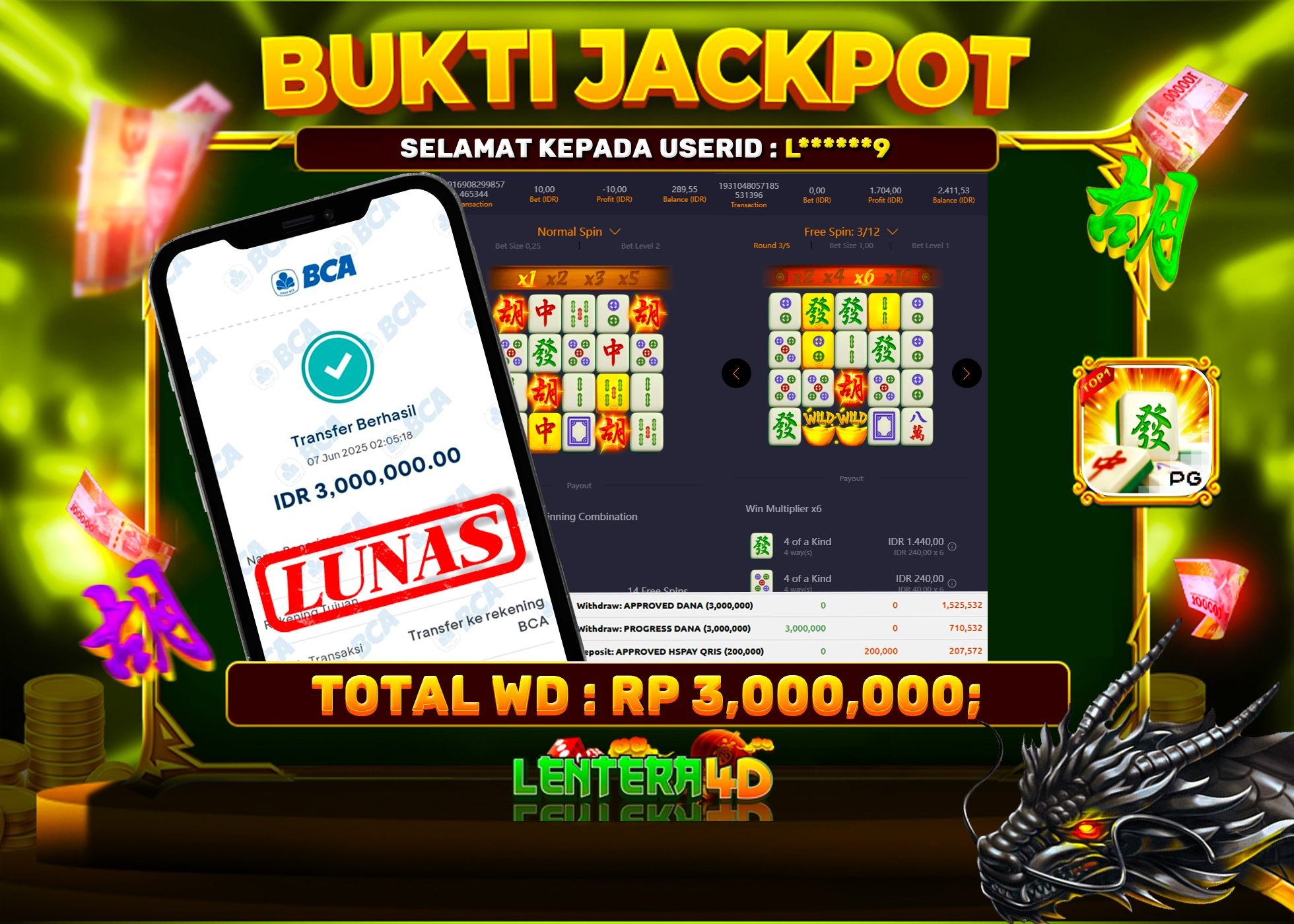 TOTAL KEMENANGAN : Rp 3.000.000,-