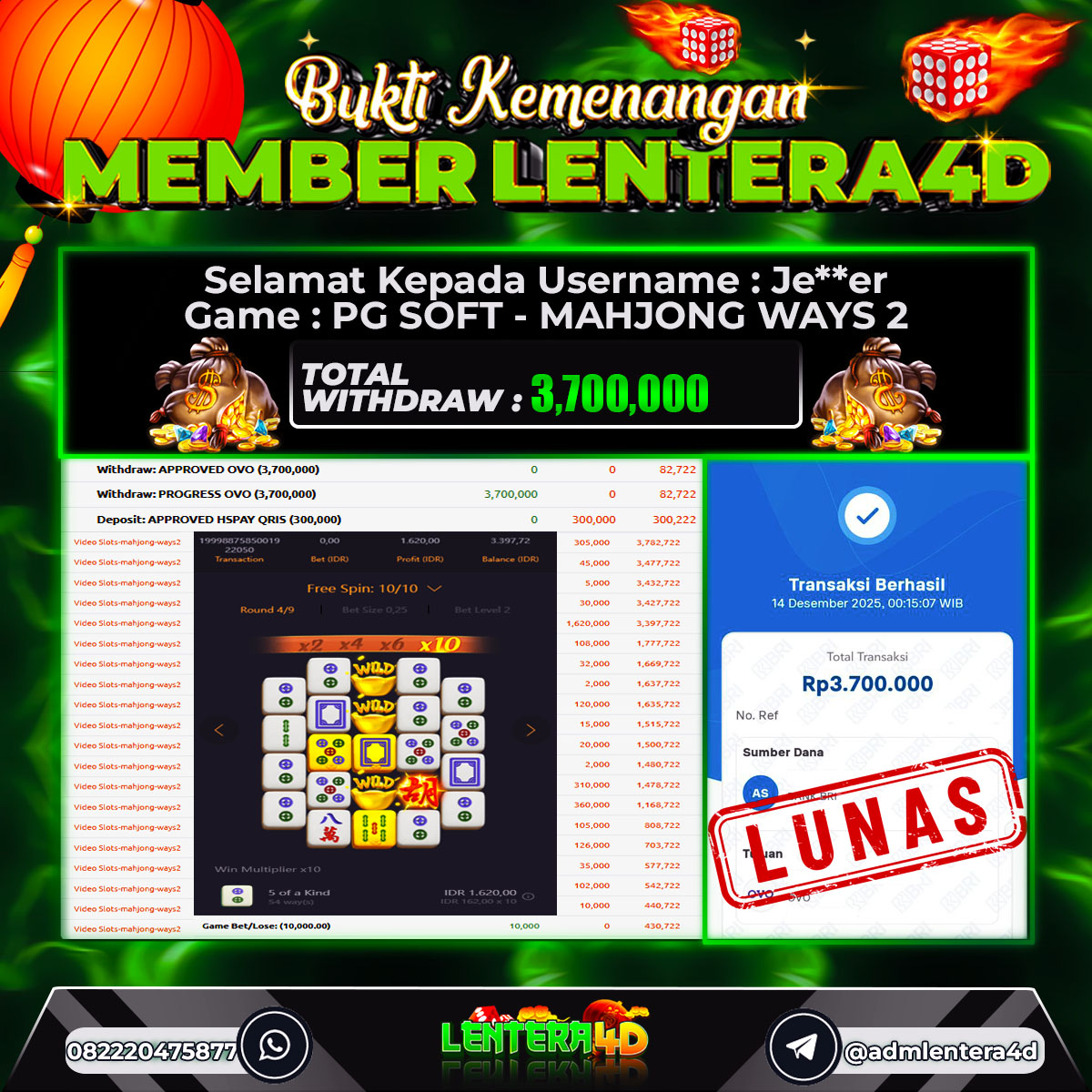 JACKPOT MAHJONG WAYS 2 14 DESEMBER 2025