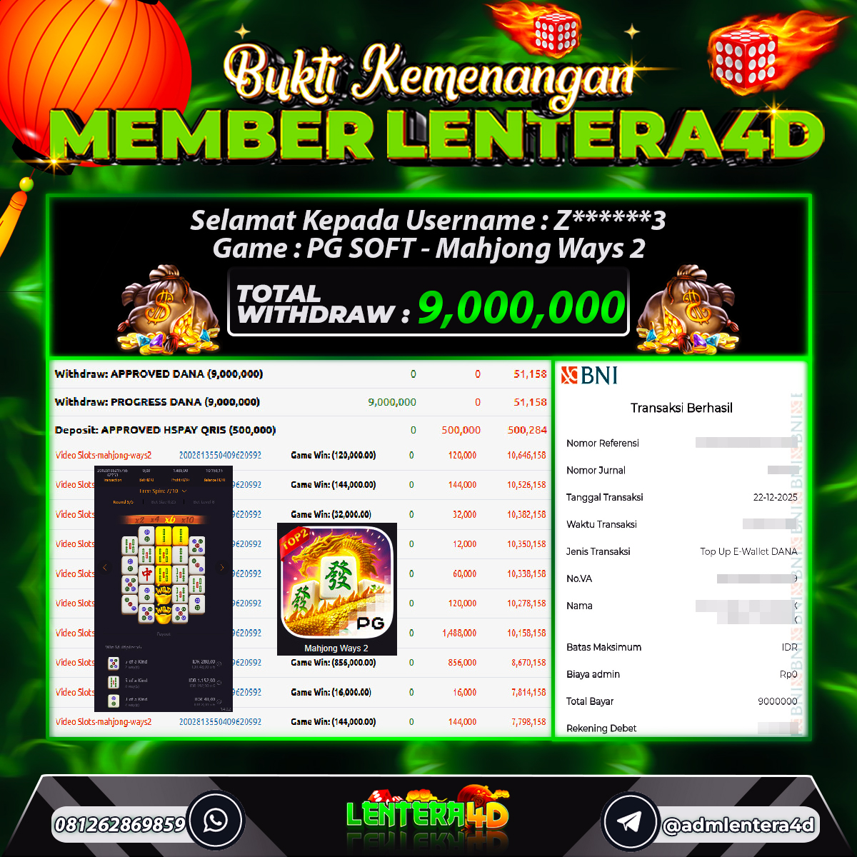TOTAL KEMENANGAN : Rp. 9,000,000,-