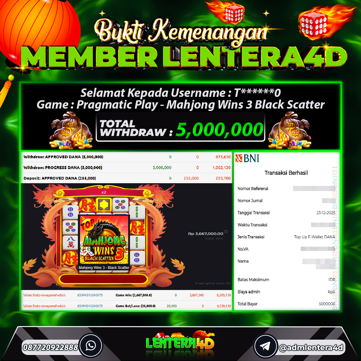 TOTAL KEMENANGAN : Rp 5.000.000,-