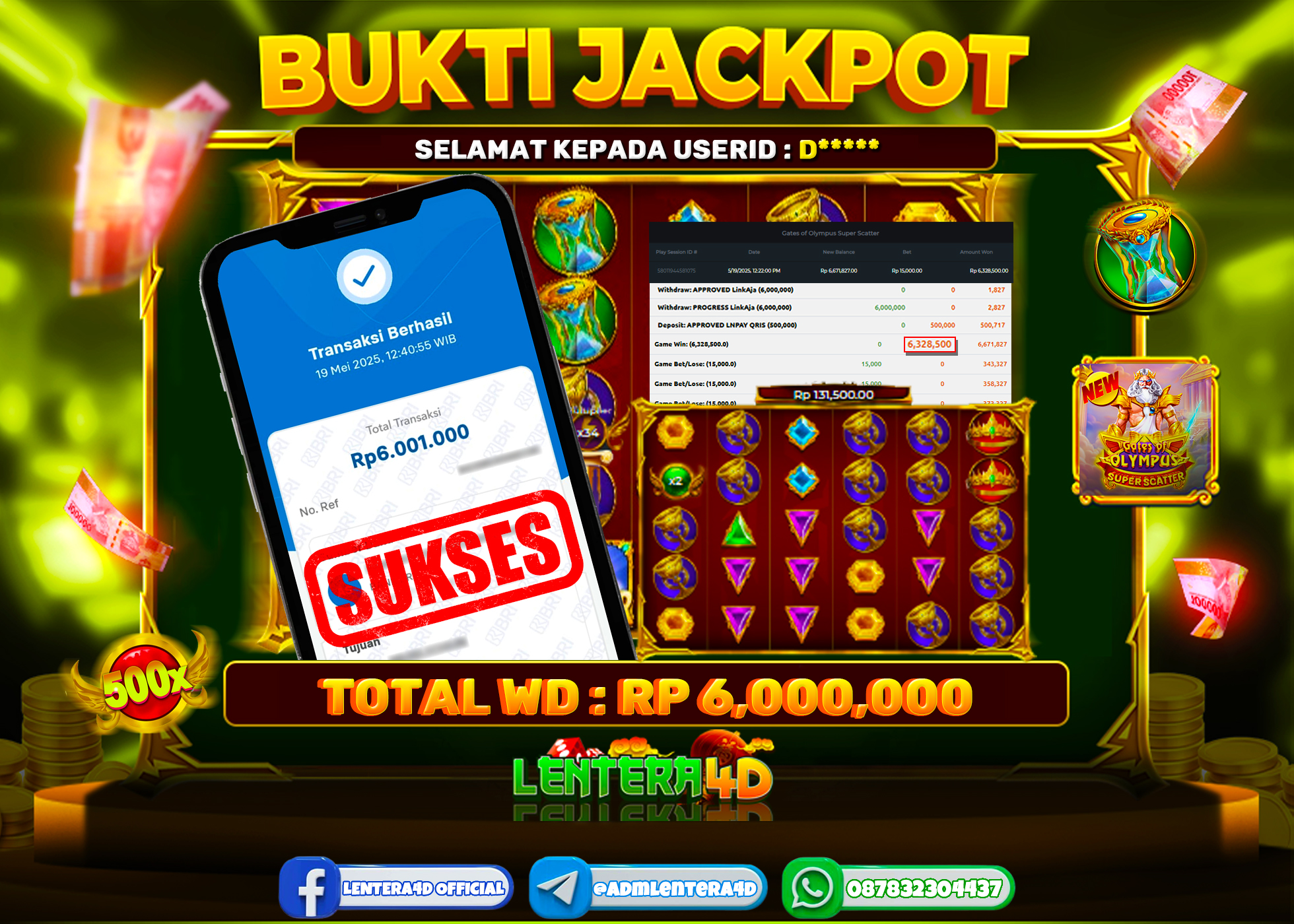 TOTAL KEMENANGAN : Rp 6.000.000,-