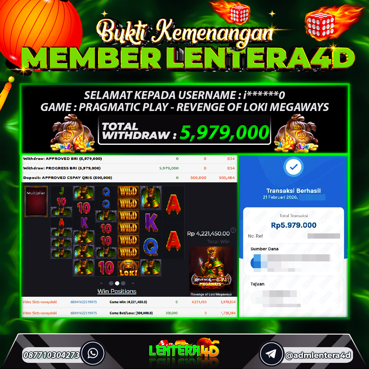 JACKPOT REVENGE OF LOKI MEGAWAYS 21 FEBRUARI 2026, Jackpot Slot Gacor, Kemenangan Slot, Bukti Kemenangan Slot, Kemenangan Slot Pragmatic Play, Menang Slot online, Slot Gacor, Situs Aman Terpercaya, WD Berapapun Pasti DI Bayar Tuntas, Maxwin Slot Online.