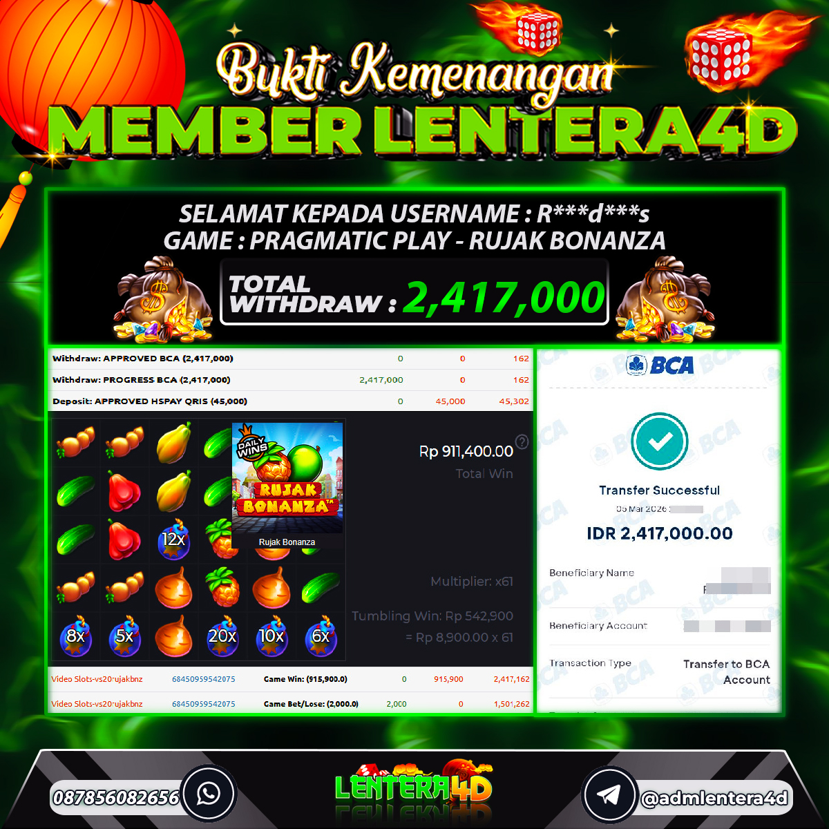 JACKPOT RUJAK BONANZA 05 MARET 2026, Jackpot Slot Gacor, Kemenangan Slot, Bukti Kemenangan Slot, Kemenangan Slot Pragmatic Play, Menang Slot online, Slot Gacor, Situs Aman Terpercaya, WD Berapapun Pasti DI Bayar Tuntas, Maxwin Slot Online.