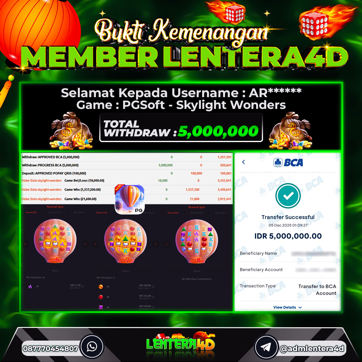 JACKPOT MAIN SKYLIGHT WONDERS 05 DESEMBER 2025, Jackpot Slot Gacor, Kemenangan Slot, Bukti Kemenangan Slot, Kemenangan Slot PG SOFT, Menang Slot online, Slot Gacor, Situs Aman Terpercaya, WD Berapapun Pasti DI Bayar Tuntas, Maxwin Slot Online.