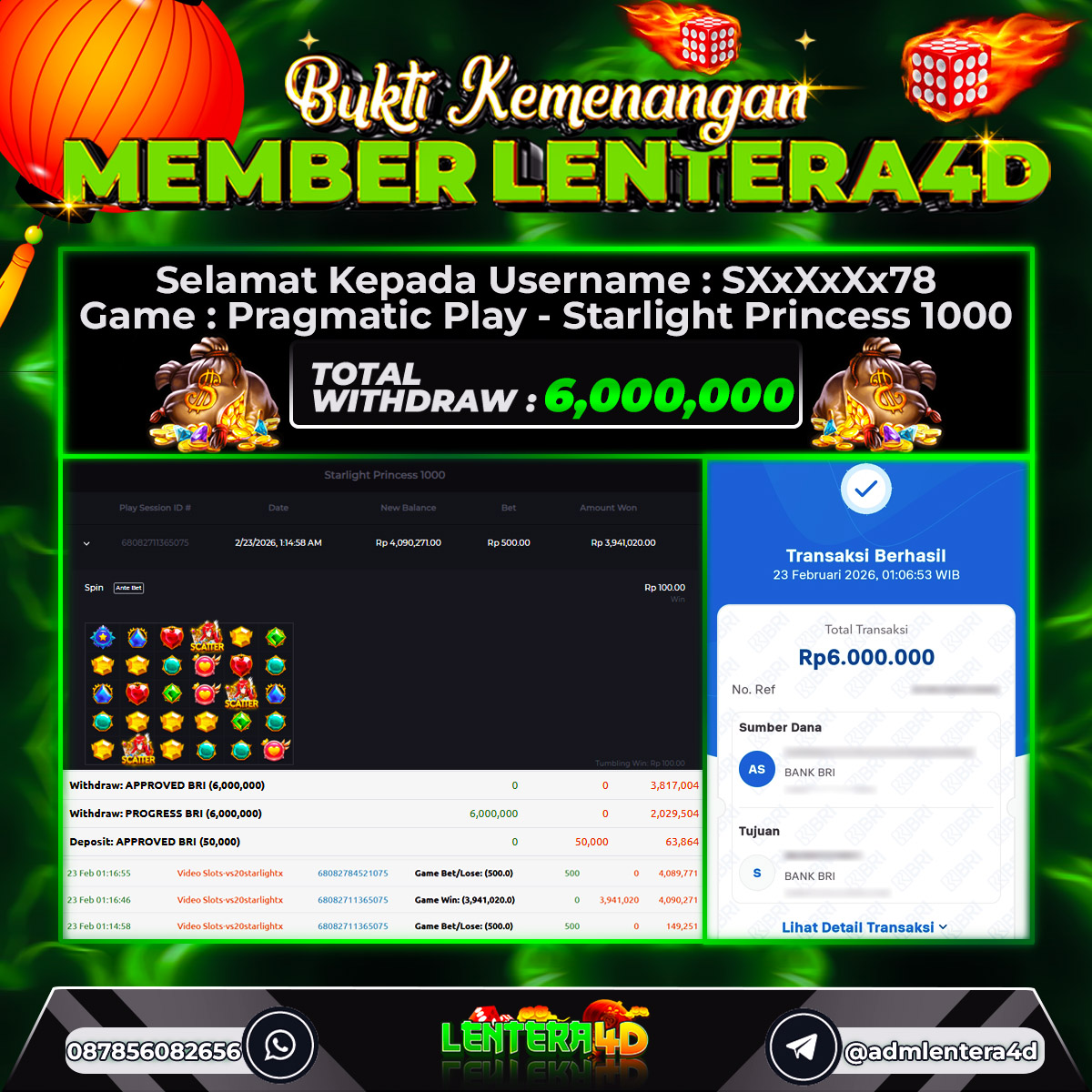 Satu lagi Bukti JP dan Pembarayan Sah Dan Dapat Dipertanggung Jawabkan, WD Berapapun Pasti Dibayar Lunas Hanya di Situs LENTERA4D. Hati Hati Kepada Pihak Pihak Yang Mengatas namakan Pihak LENTERA4D Untuk Melakukan Penipuan.