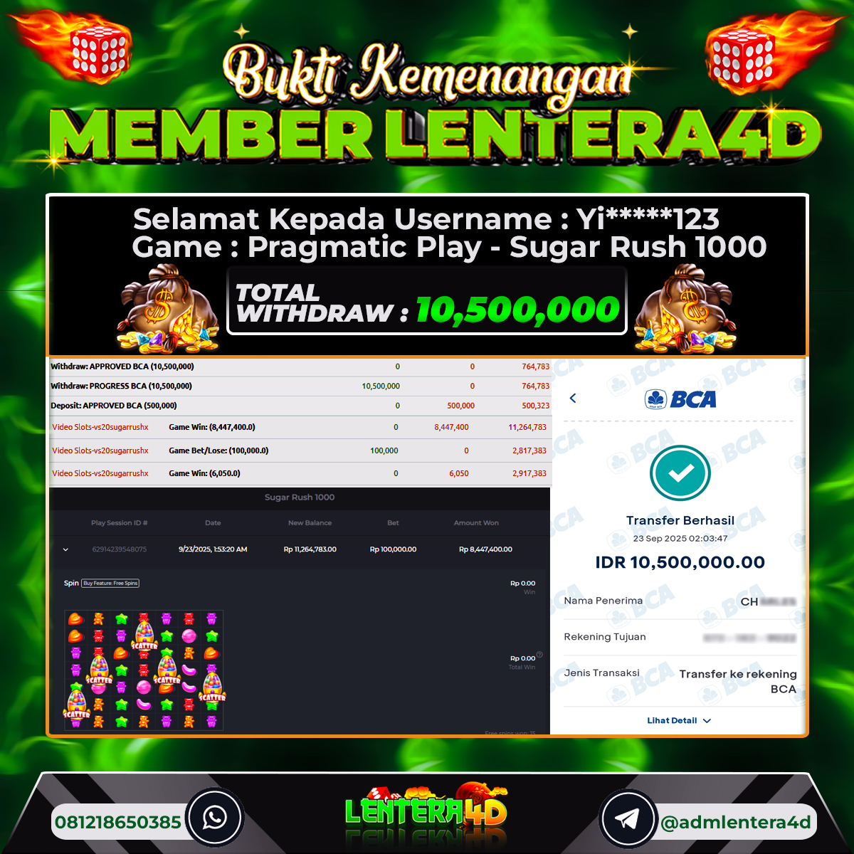 JACKPOT SUGAR RUSH 10000 23 SEPTEMBER 2025, Jackpot Slot Gacor, Kemenangan Slot, Bukti Kemenangan Slot, Kemenangan Slot Pragmatic Play, Menang Slot online, Slot Gacor, Situs Aman Terpercaya, WD Berapapun Pasti DI Bayar Tuntas, Maxwin Slot Online.