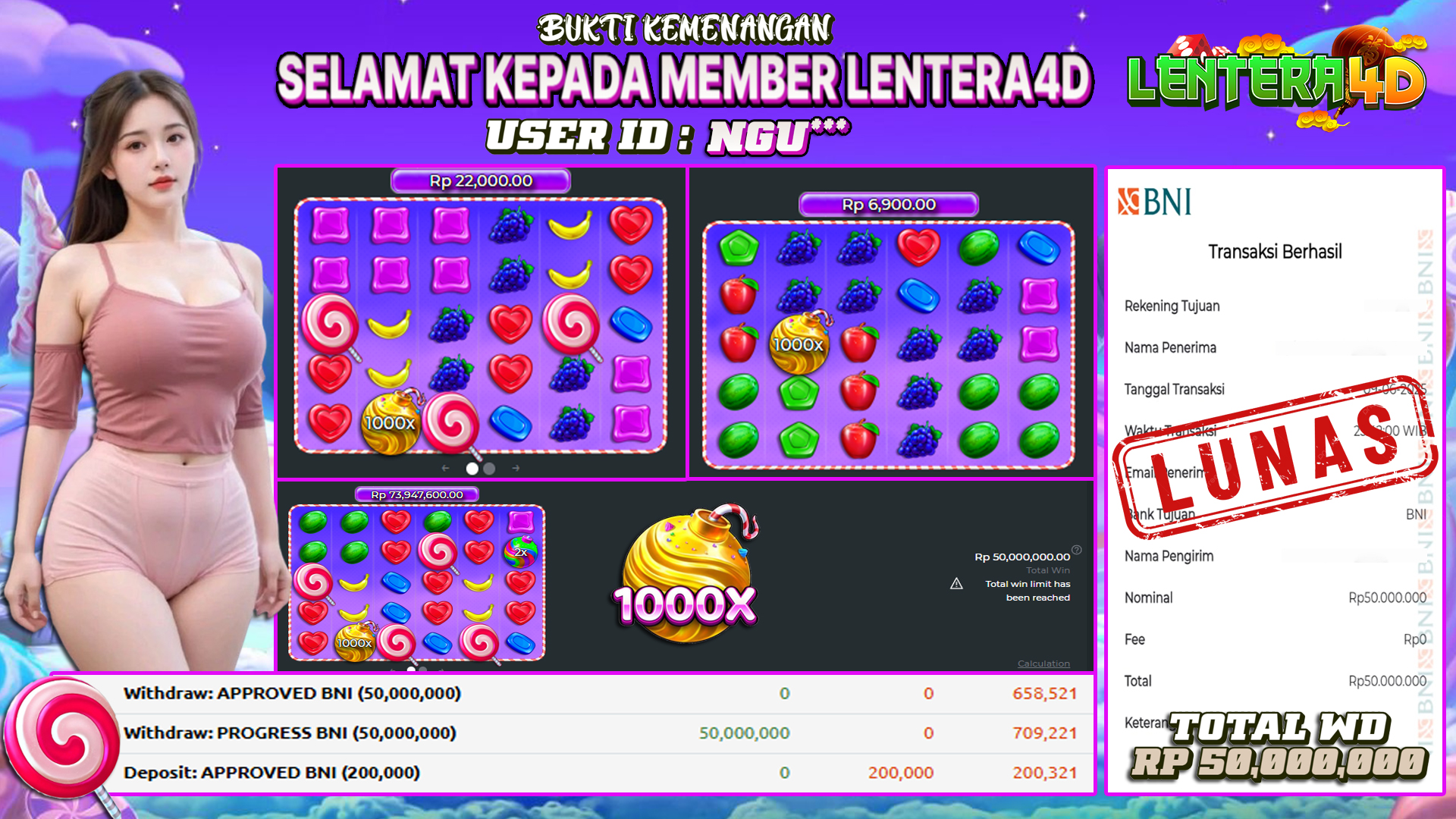 Satu lagi Bukti JP dan Pembarayan Sah Dan Dapat Dipertanggung Jawabkan, WD Berapapun Pasti Dibayar Lunas Hanya di Situs LENTERA4D. Hati Hati Kepada Pihak Pihak Yang Mengatas namakan Pihak LENTERA4D Untuk Melakukan Penipuan.