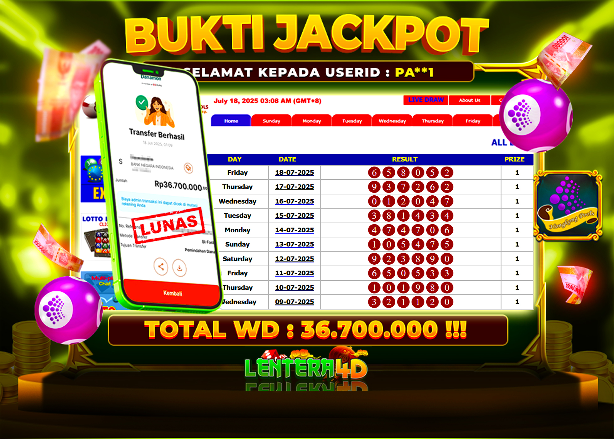 TOTAL KEMENANGAN : Rp 36.700.000,-