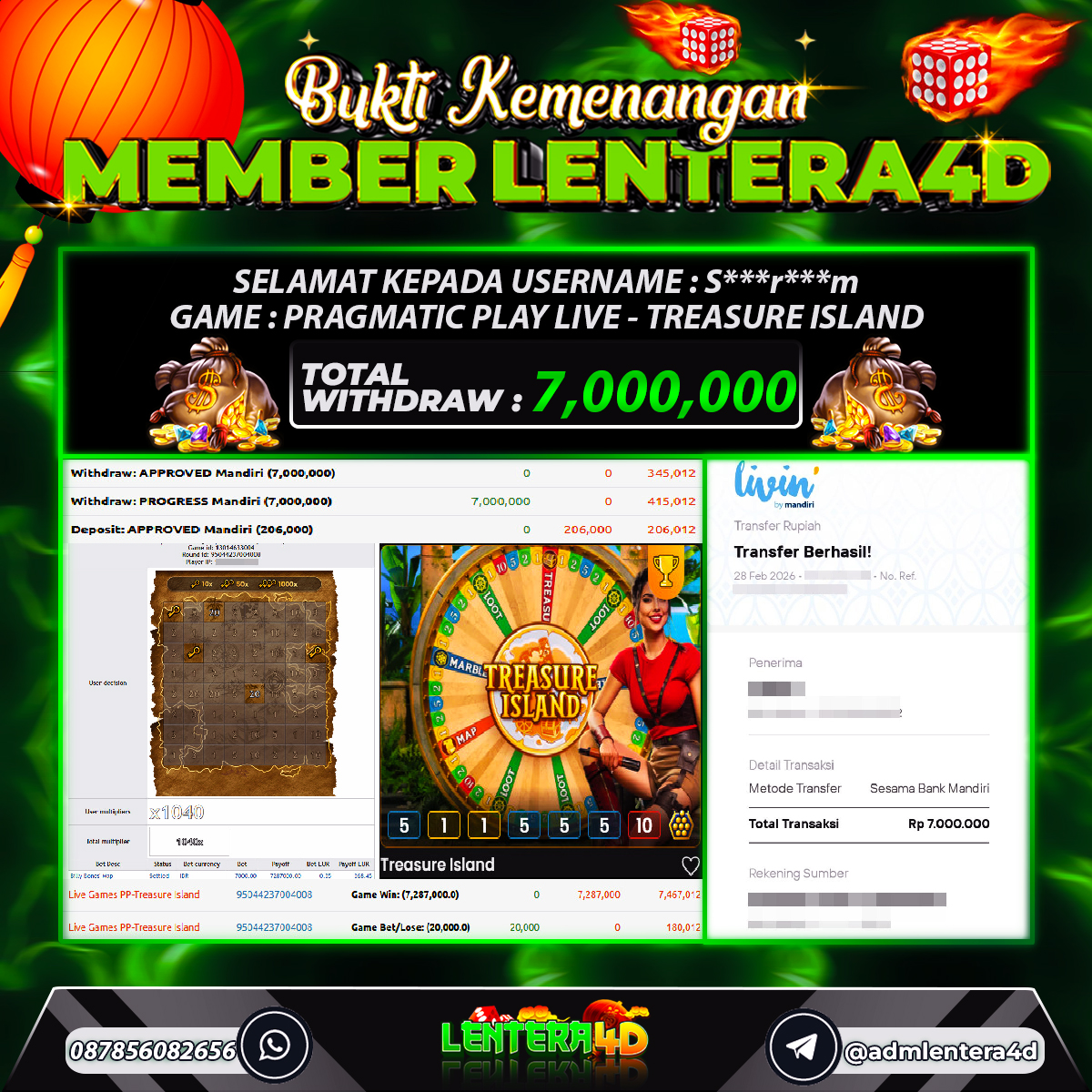 TOTAL KEMENANGAN : Rp 7.000.000,-