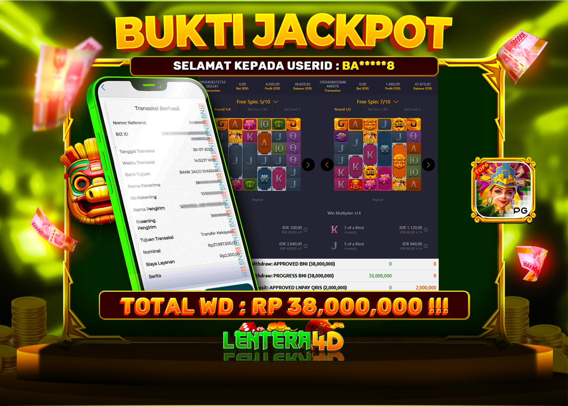 Selamat Kepada Member Yang Berhasil Mendapatkan Jackpot Dipermainan Slot PG SOFT Hari Ini, Berikut Bukti SS Jackpot Member Di Situs LENTERA4D