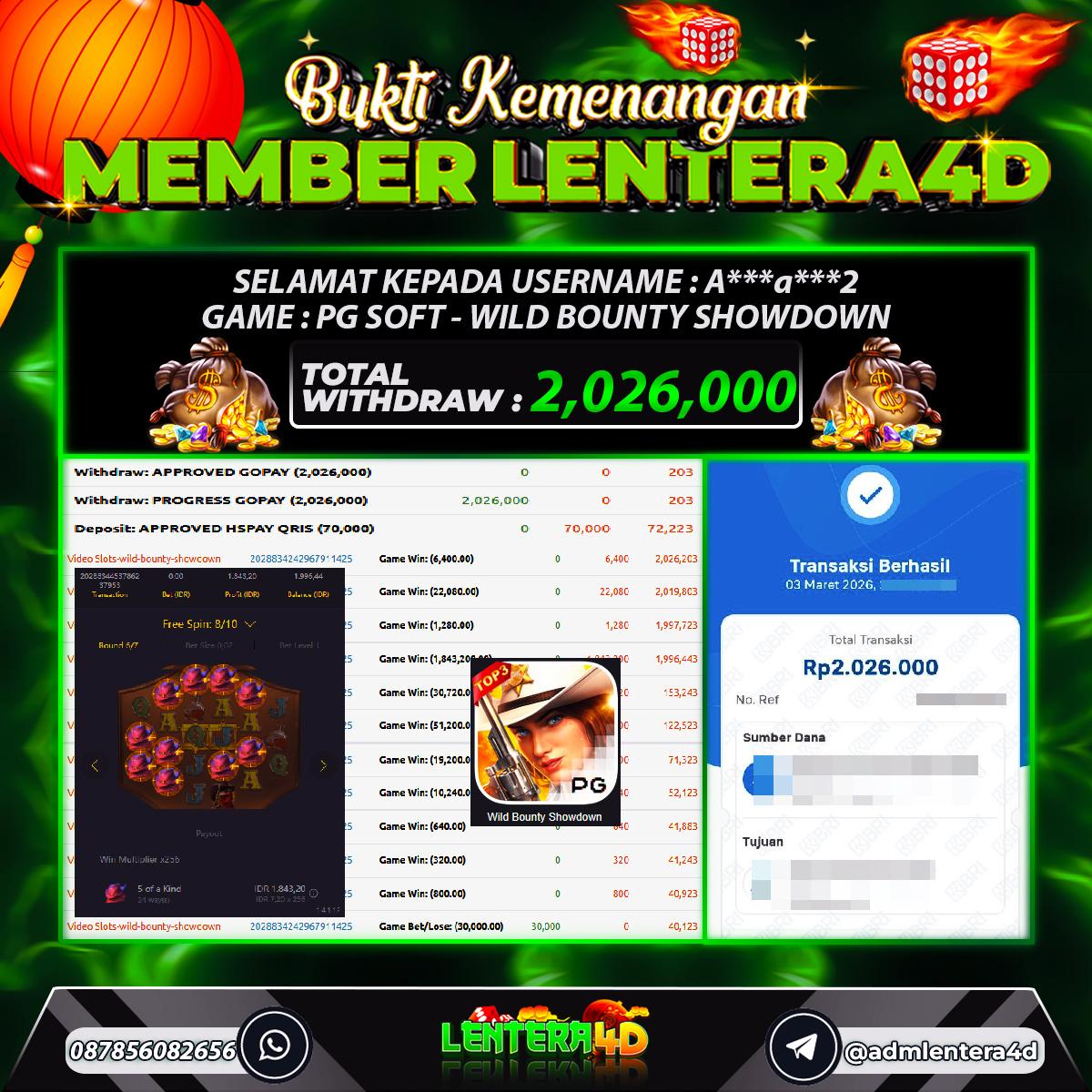 JACKPOT MAIN WILD BOUNTY SHOWDOWN 03 MARET 2026, Jackpot Slot Gacor, Kemenangan Slot, Bukti Kemenangan Slot, Kemenangan Slot PG SOFT, Menang Slot online, Slot Gacor, Situs Aman Terpercaya, WD Berapapun Pasti DI Bayar Tuntas, Maxwin Slot Online.
