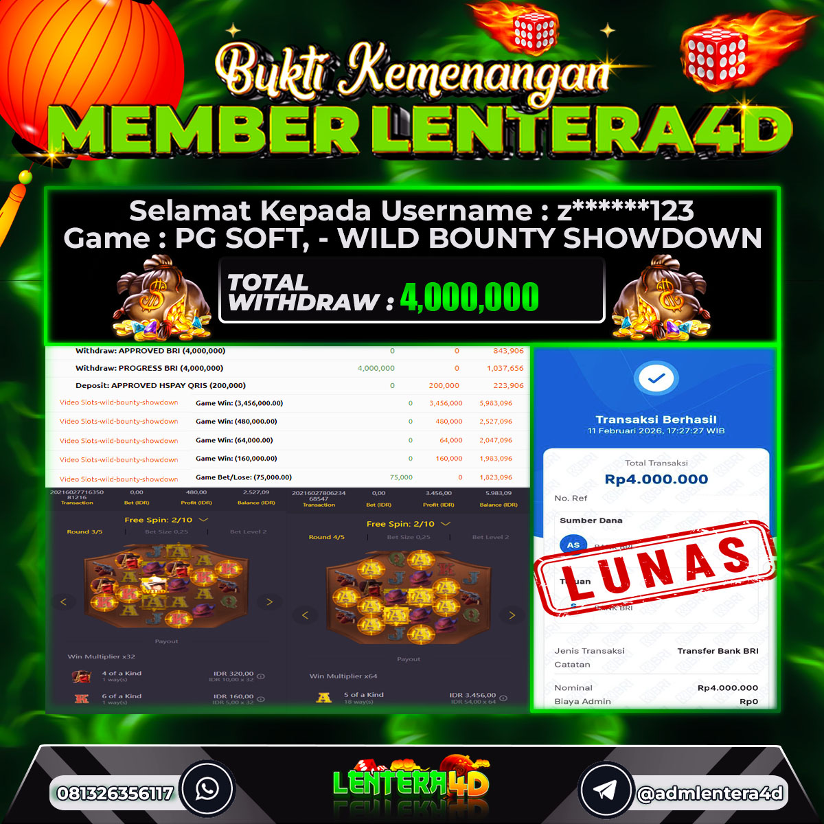 TOTAL KEMENANGAN : Rp. 4.000.000,-