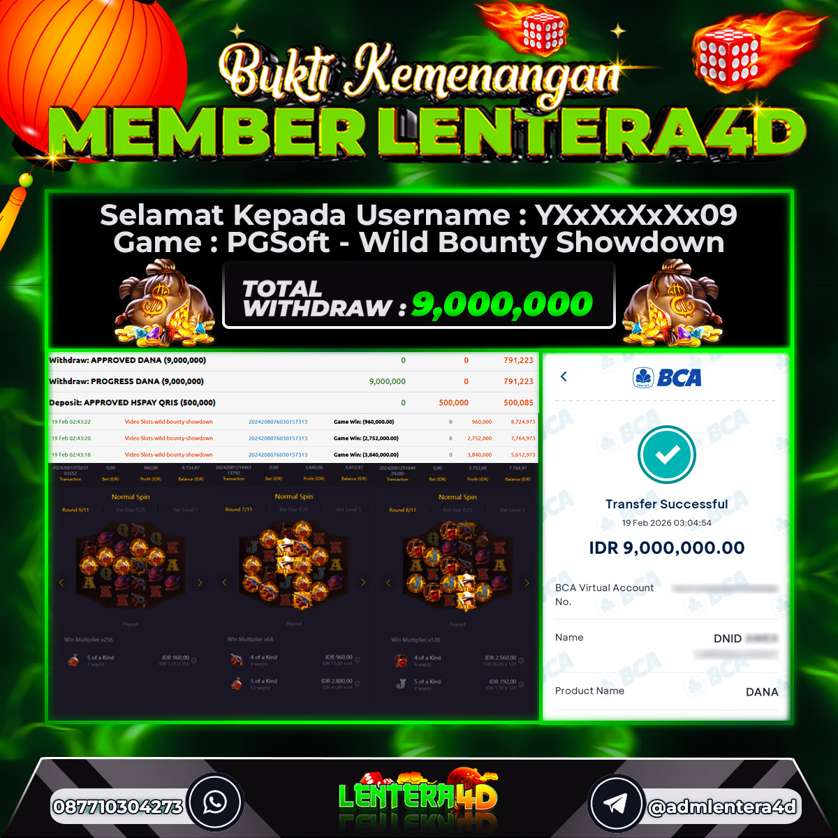 TOTAL KEMENANGAN : Rp. 9.000.000,-