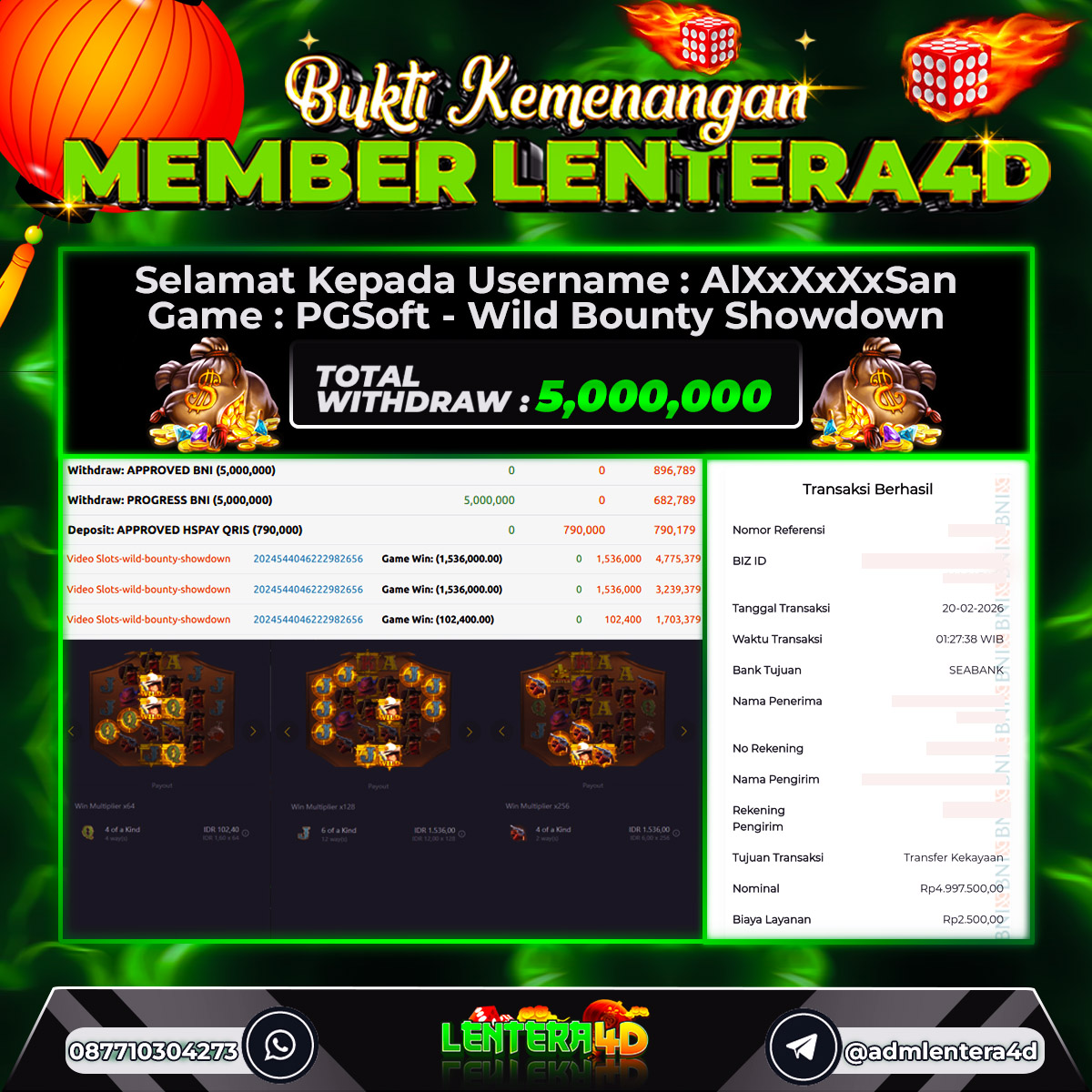 JACKPOT MAIN WILD BOUNTY SHOWDOWN 20 FEBRUARY 2026, Jackpot Slot Gacor, Kemenangan Slot, Bukti Kemenangan Slot, Kemenangan Slot PG SOFT, Menang Slot online, Slot Gacor, Situs Aman Terpercaya, WD Berapapun Pasti DI Bayar Tuntas, Maxwin Slot Online.